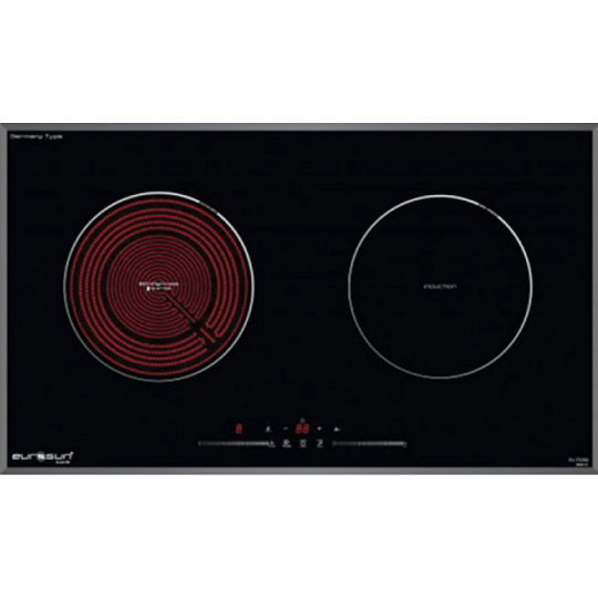 Bếp Điện Từ Eurosun EU-TE269S cung cấp cả vùng nấu từ hiệu suất cao, lý tưởng cho các tác vụ nhanh, và vùng nấu hồng ngoại tương thích với mọi vật liệu, hoàn hảo cho các loại nồi đặc biệt hoặc giữ ấm.