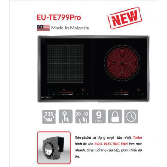 Bếp Điện Từ EUROSUN EU-TE779 Pro là một thiết bị nấu ăn hiệu suất cao, được chế tác với kỹ thuật tiên tiến, tích hợp thành công hai công nghệ gia nhiệt ưu việt. Sự kết hợp giữa hiệu suất nhiệt cao (>90%) của vùng nấu cảm ứng từ và tính tương thích vật liệu toàn diện của vùng nấu hồng ngoại, được quản lý bởi một hệ thống điều khiển thông minh và các linh kiện cao cấp từ Đức, mang đến một giải pháp nấu nướng linh hoạt, mạnh mẽ và an toàn.