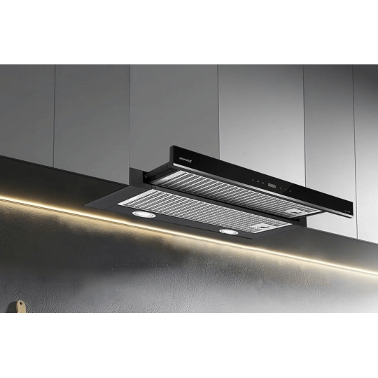 Thiết Kế Âm Tủ Kéo Ra Thông Minh: Máy Hút Mùi Âm Tủ GRANDX GX H70F75B có thiết kế âm tủ toàn phần, giúp bảo vệ thân máy tối đa bên trong khoang tủ, tăng cường độ bền.