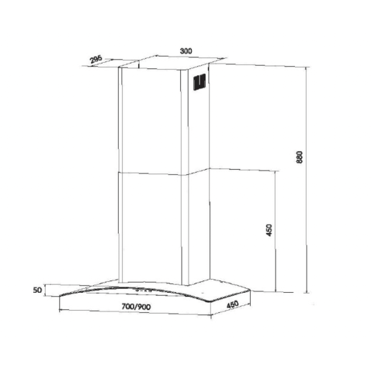 Bảng Vẽ Kích Thước Máy Hút Mùi Eurosun EH-70K11E