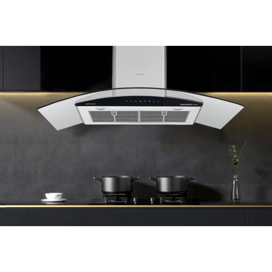 Phân tích: Được trang bị động cơ tuabin đôi công suất lớn, Máy Hút Mùi Kính Cong GRANDX GX H90C62 tạo ra sức hút lên đến 1100 m³/h.