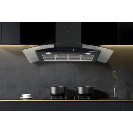 Máy Hút Mùi Kính Cong GRANDX GX H70C62B Với Động Cơ Tuabin Đôi Mạnh Mẽ